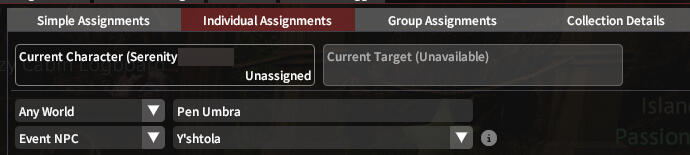 Then, look under Individual Assignments and either left click Current Character and assign the collection you made, or type the name of the player character you want to make a collection for, then left click New Player/Bell Retainer/NPC/Owned NPC and assign the specific collection. After you have entered the named of any characters/NPC's, you can also edit the collection used under Simple Assignments as well.