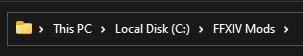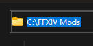 TIP: The root of the drive is the base of it, so in my example, I have mine at C:\FFXIV Mods.