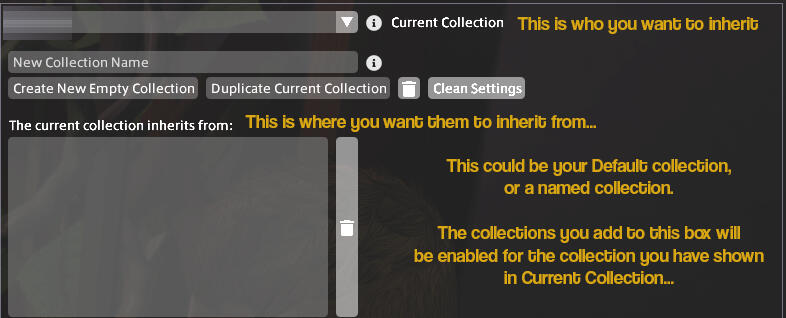 Collections allow you to set up a character or a specific types of characters with specific mods, so they have mods on but not everyone does.They can make it so certain looks, or even certain mounts, animations, minions, or other assorted things are personal to you and not shared to everyone.