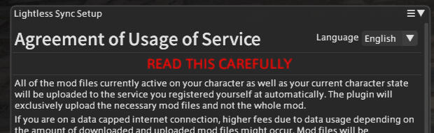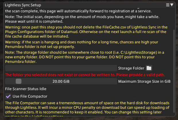 And that's it! Lightless is set up, and you will sync with your friend. Any changes in Penumbra or Glamourer they make will also be shown to you, once it has been downloaded. Repeat with the rest of your friends!