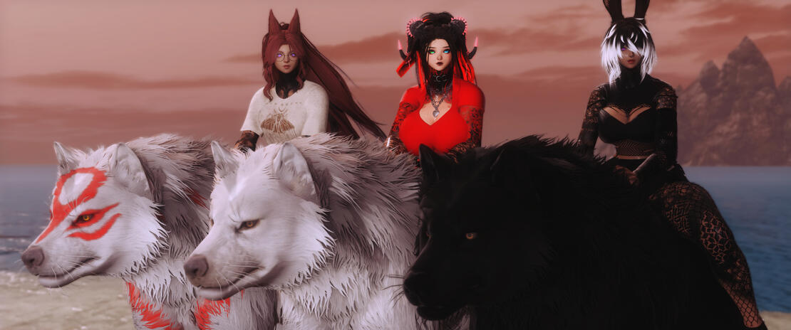 Take for example, the pic below. I am on the bigger best boy Torgal, but my friend Kuny is on the same mount, but black, and my friend Ather is on a kitsune version! It's pretty neat!