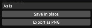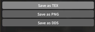 So, either get an eye texture from a modding website, or if you just want to change your current eyes, go into the Import from Screen section, go to the Face, and then to the Iris, and save the material by clicking the page as shown to the right. Then, go to Textures and find the eye texture. We will be doing two exports here. For the first export, select the presets button and choose "Make Opaque (Drop Alpha)" and choose Export to PNG. For the second one, we will do "Extract Alpha", and then "Invert Colors", then export this one as well. If you are sitting here thinking "but it's just a black square", that is exactly what we want...for now.