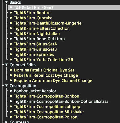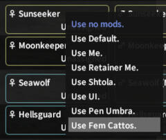Aside from changing out one mod being enabled or another, my biggest use is using it to change the options selected within the same mod but for different reasons! For example, as seen in the video below, it shows mods being turned on or off because when I am in my bikini, the "Drenched " mod enables and makes me look like I just came out of the water, but when I switch back to my normal clothes, I am totally dry! And, it also shows how when I switch classes my hair and tail change. You may be saying that is standard, but because my hair and tail animates, the colors are set my material and not dye, so it has to change options within my mod to actually change that! Mod Associations can be super fun and powerful!