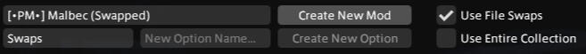 After you have chose the options for that type of swap you would like, you can either create a whole new mod, or set it to be an option on the current mod. Name the mod or option you would like, then click on Create New Mod to create a new mod, or Create New Option to make an option for the current mod.